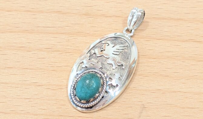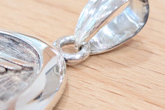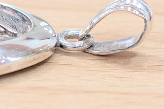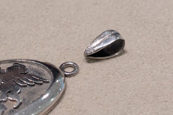 シルバーペンダントトップのお修理をご依頼いただきました。バチカンがすれて薄くなり外れていました。バチカンを少し補強してからロー付け加工をさせていただきました。