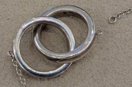 ティファニーインターロッキングシルバーネックレスお修理のご依頼です。切れてしまった部分をロー付けし、綺麗に仕上げをさせていただきました。