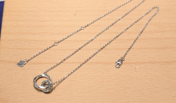 ティファニーインターロッキングシルバーネックレスお修理のご依頼です。切れてしまった部分をロー付けし、綺麗に仕上げをさせていただきました。