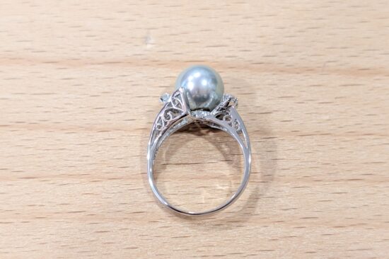 プラチナグレーパールリングのサイズ直しのご依頼です。18号から8号へ大幅ダウンになります。