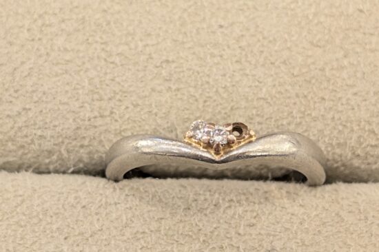 プラチナ/K18ダイヤ結婚指輪の石合わせのご依頼をいただきました。ダイヤ1ピースをあわせ 爪の補強と石留をいたしました。