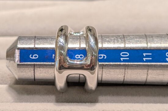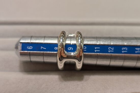 HERMESエルメスオスモズシルバーリングサイズ直しのご依頼です。こちらのリングはカットが出来ないため、ゆっくり時間をかけてリングを1サイズ小さくさせていただきました。元々あいている隙間が少し狭くなります。