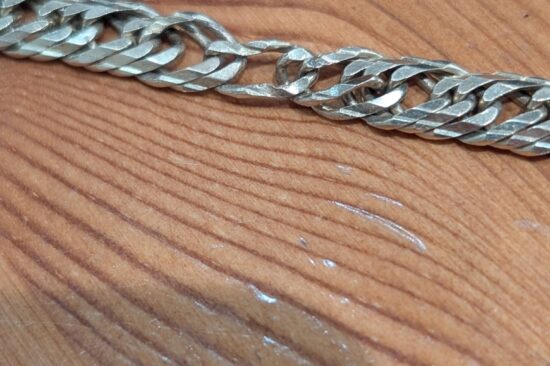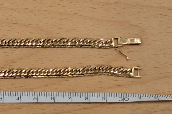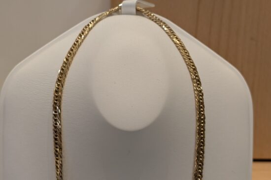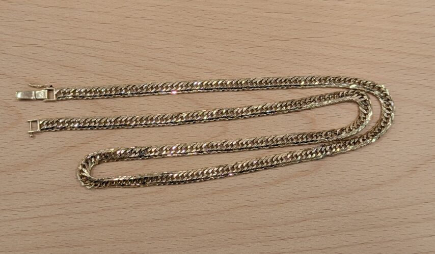 K18キヘイネックレス お修理のご依頼をいただきました。何かに挟まり数カ所が切れ、ゆがみ、よじれを生じた状態でお預かりいたしました。