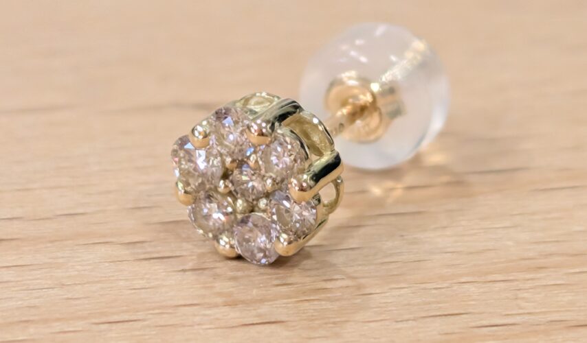 使えずにいたK18ダイヤペンダントトップをピアスに加工させていただきました。