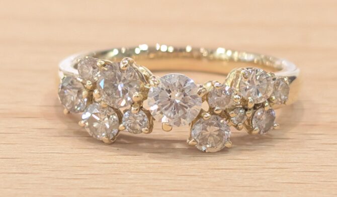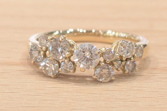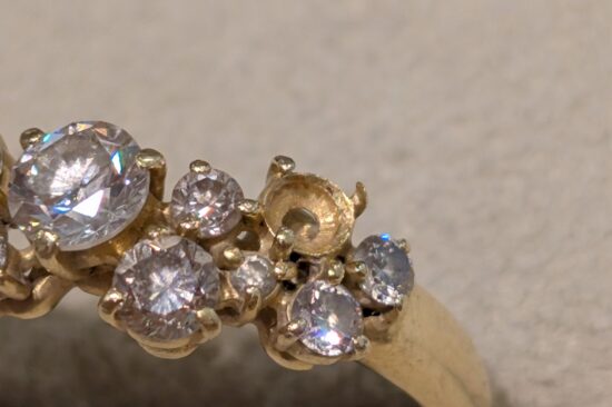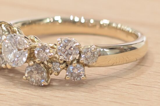 K18ダイヤリングお修理のご依頼をいただきました。ひとつ取れてしまったダイヤの石合わせと石留を致しました。仕上げも一緒にしてピカピカの状態でお渡しが出来ました。