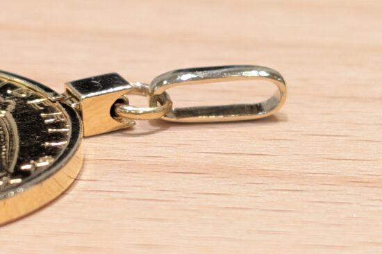 K18枠インディアンコインペンダントバチカンお修理のご依頼です。長年お使いでバチカン部分が薄くなり取れてしまったとの事。ロー付けをしっかりして綺麗にお直しさせていただきました。